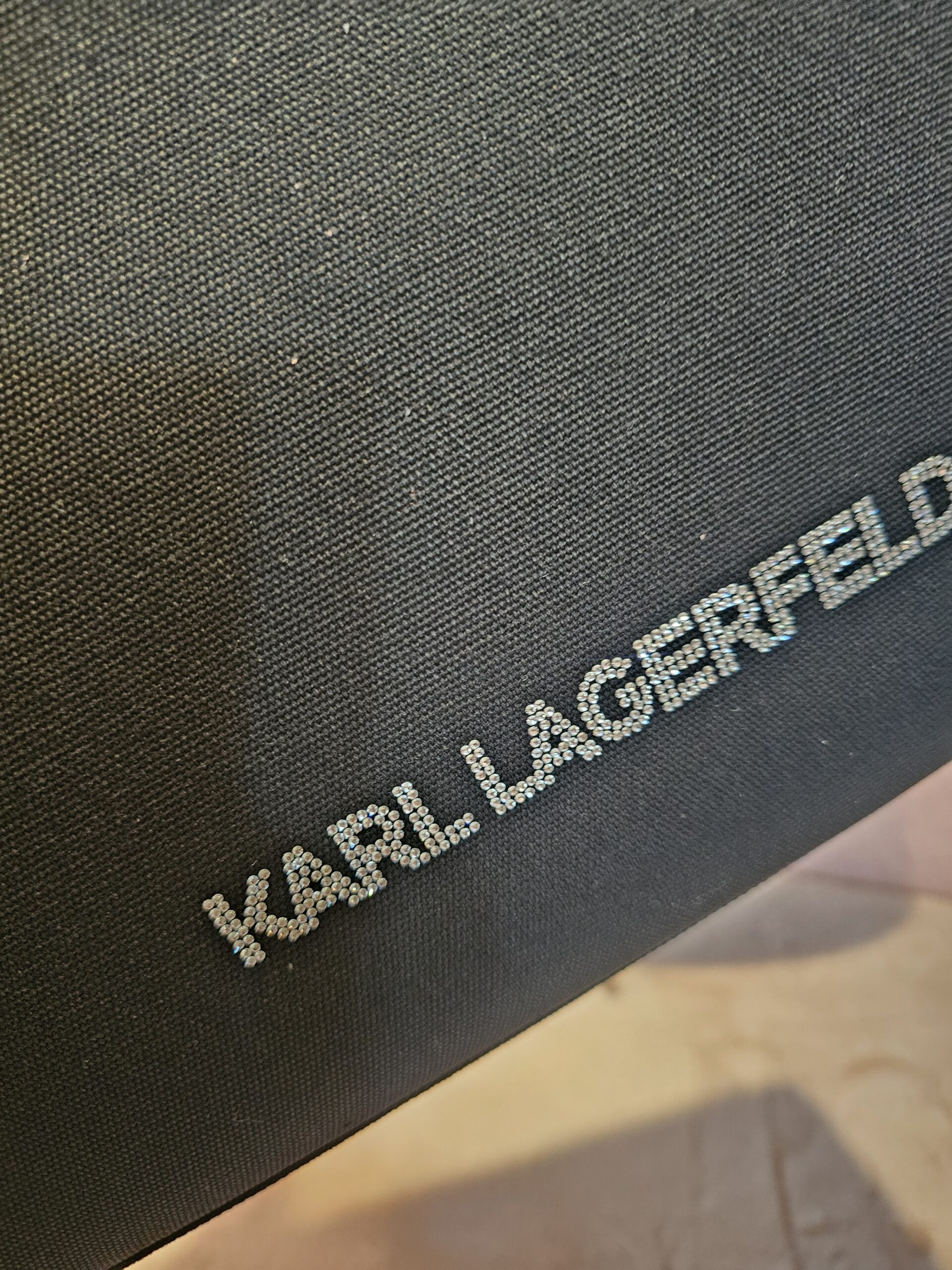 Lona con logo de Karl en cristales